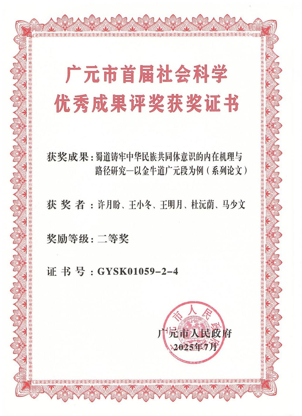 学院三项社科成果获广元市政府表彰