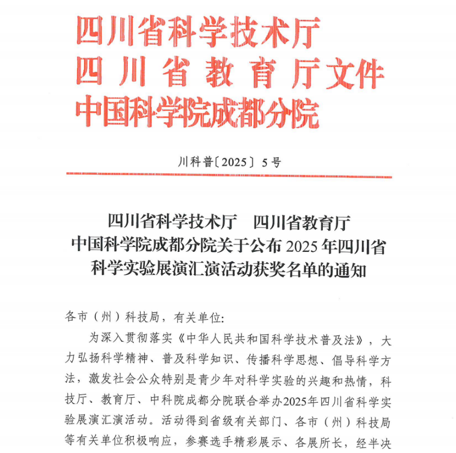 学院荣获2025年四川省科学实验展演汇演活动优秀奖