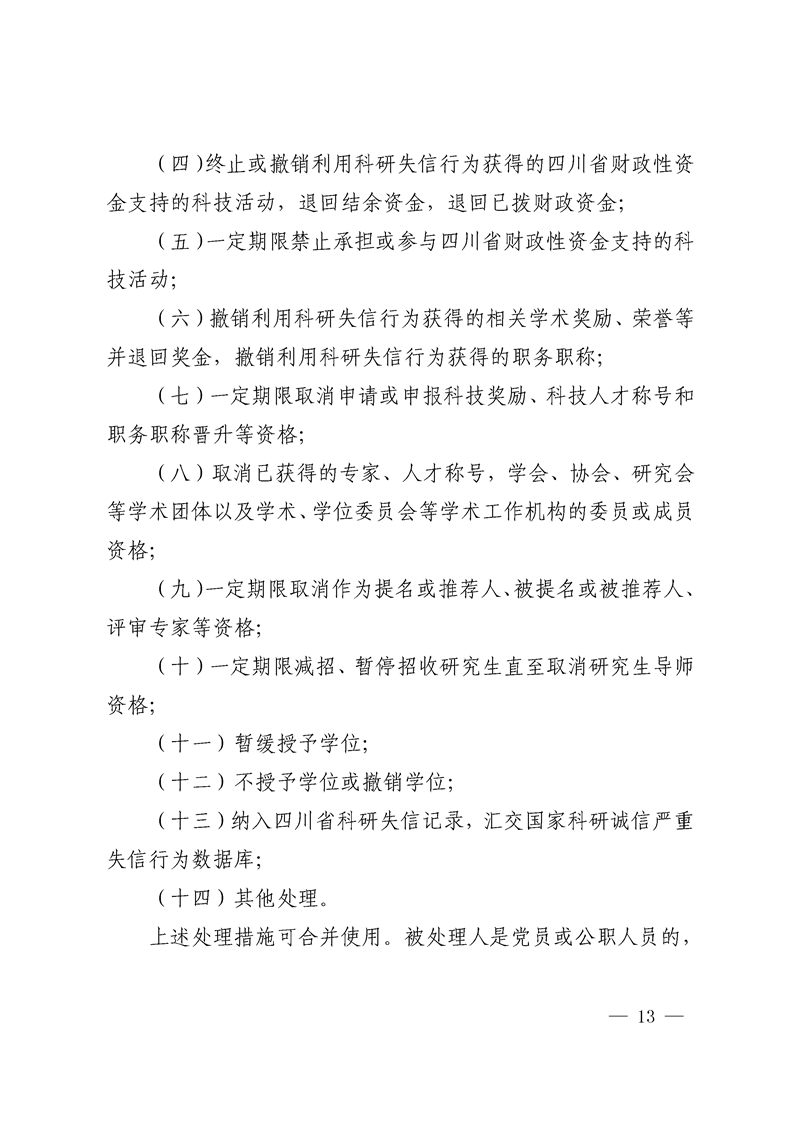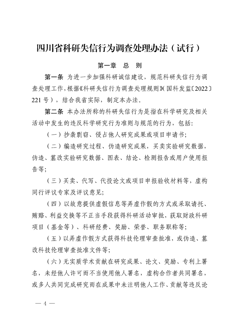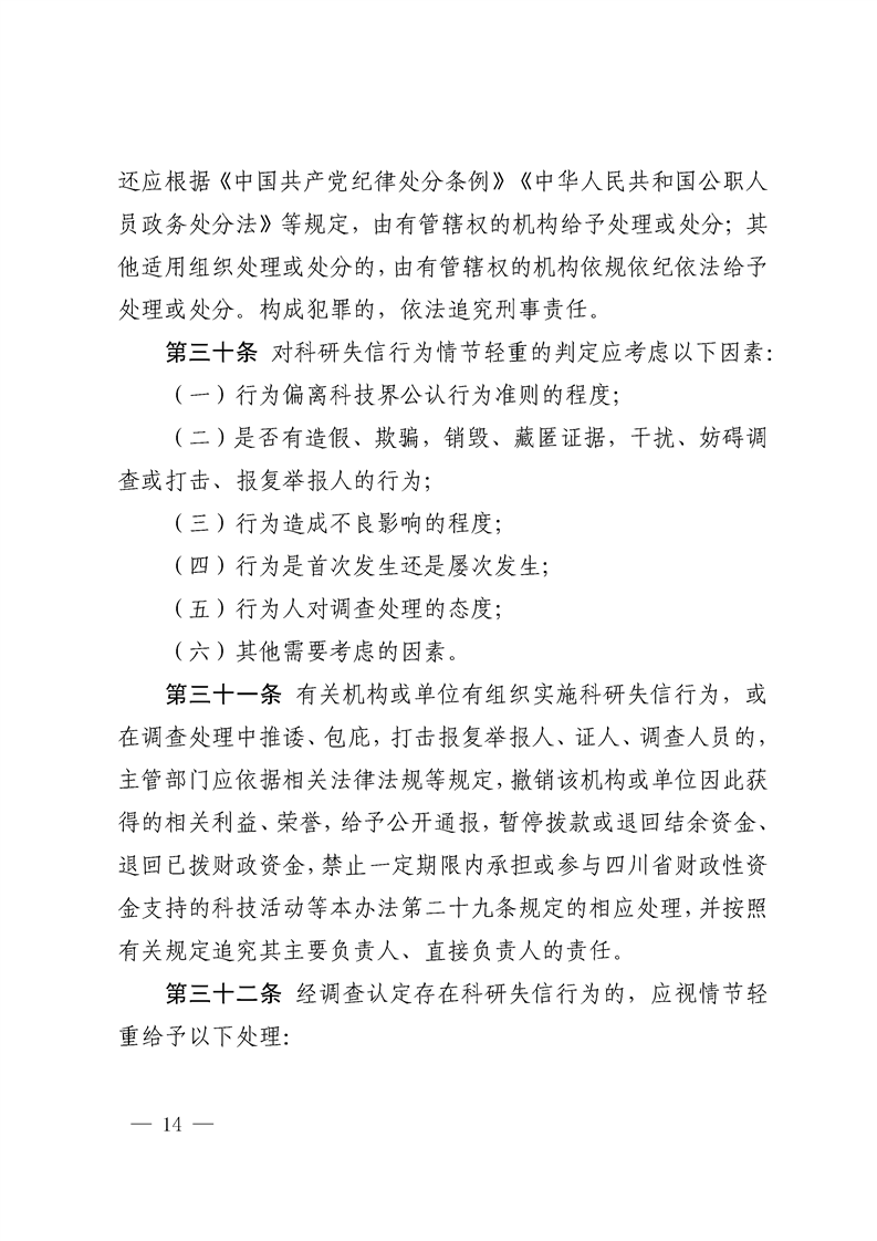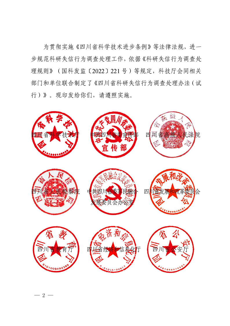 【省市文件】科技厅等十八部门四川省科研失信行为调查处理办法(试行)