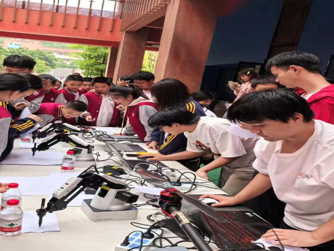 “人工智能”分场展示了写字机器人、画像机器人、寻迹机器人、无人机等作品,同学们赞不绝口,争先恐后体验。科普活动历时两个小时,现场气氛热烈,活动结束时学生们仍然意犹未尽。