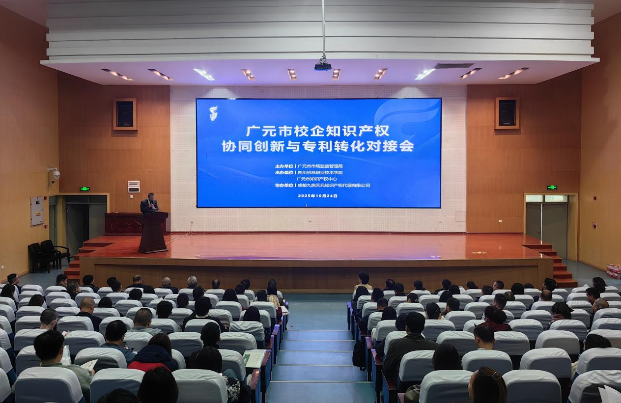 2025年10月24日,广元市市场监管管理局主办、四川信息职业技术学院承办的"知识产权协同创新与专利转化对接会"在学院学术交流中心举行。政校企代表逾百人参会,现场共发布知识产权成果供需信息60条,达成3项重点成果合作并签约。