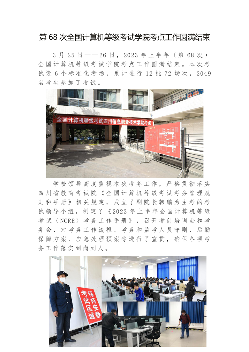 第68次全国计算机等级考试学院考点工作圆满结束